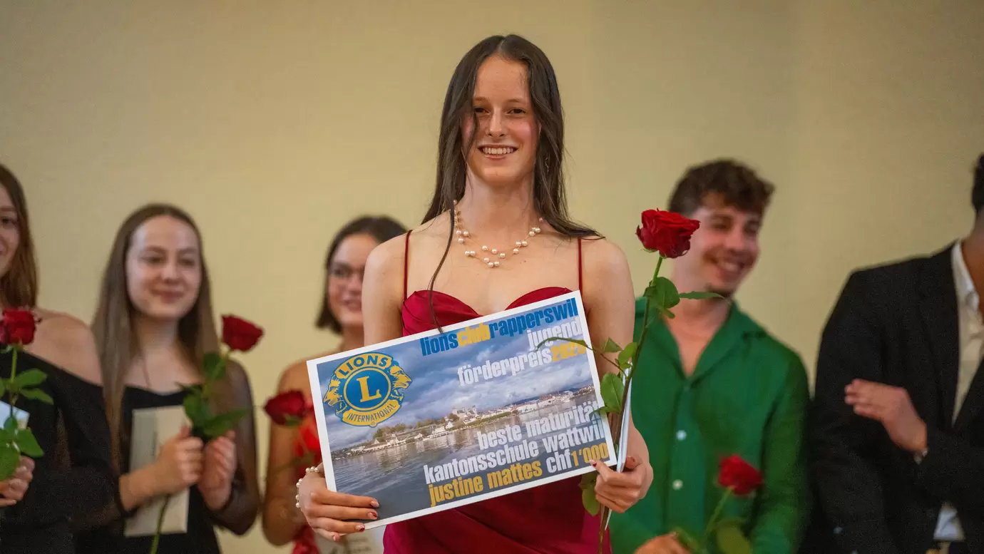 Mattes Justine Lilian Gommiswald | erhält den Anerkennungspreis des Lions Club Rapperswil für die beste Maturitätsprüfung 2025 sowie für die beste Maturitätsprüfung des Schwerpunktfaches Latein. |