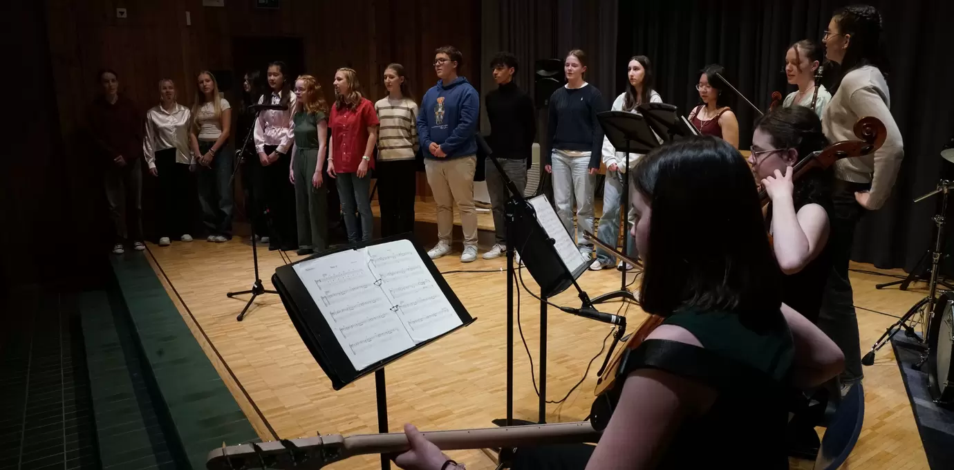 Der Chor cantacanti präsentiert zusammen mit der Schülerband static Musik aus den achziger Jahren.